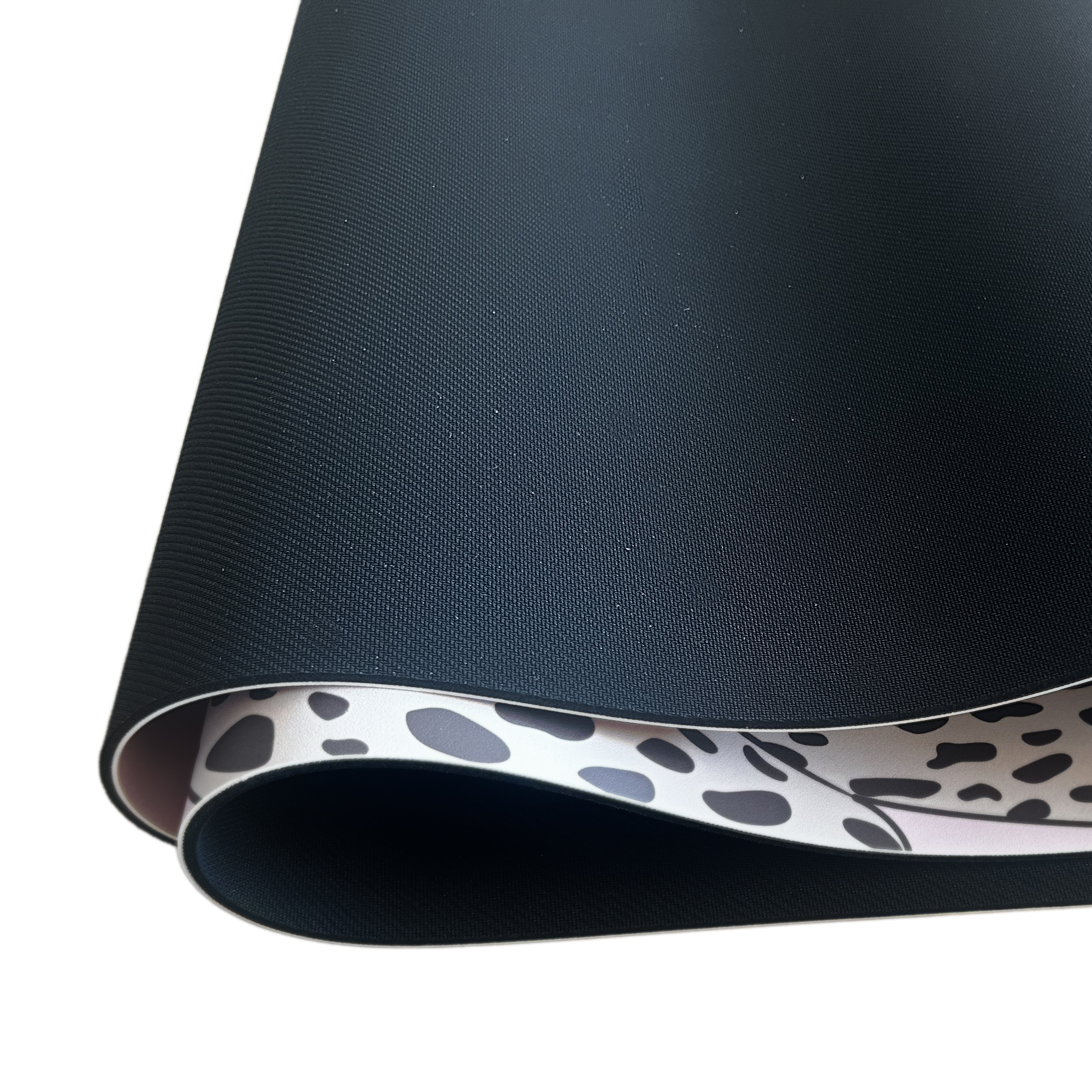 Het roze panter design is in de toplaag geïntegreerd en slijt bij normaal gebruik niet snel weg. Het patroon blijft rustig in beeld, zodat je focus op adem en uitlijning blijft. De matte afwerking voorkomt storende reflecties onder lamplicht of bij daglicht. Praktisch voordeel van het motief: lichte sporen vallen minder op dan bij effen, zeer donkere matten. De uitstraling is eigenzinnig zonder te domineren, waardoor de mat zowel thuis als in een groepsles een verzorgde indruk geeft.